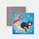 Un cadeau idéal pour les amoureux de les chats. Aimant frigo d'art populaire avec un chat noir endormi sur la lune ! D'un acrylique original sur toile © 2009 Lisa Marie Robinson.