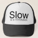 Ce casquette de la qualité lente a été inspiré en explorant les merveilles de la méthode de Feldenkrais, par le mouvement lent de nourriture et par le désir et la nécessité simplement de ralentir et apprécier la vie.