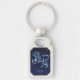 Keychain featuring the zodiac symbol for Leo in soft silver blue, overlaid with the stars of the constellation, against a starry sky background graded from deep midnight blue to black.