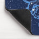 Mouse pad in the zodiac symbol for Leo in soft silver blue, overlaid with the stars of the constellation, against a starry sky background of deep midnight blue