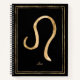 Stylized hammered gold Leo the Lion astrology zodiac birthday symbol in a hand drawn gold double line frame. A hardcover or softcover notebook with your choice of inside pages. Choose from sketchbook, bullet journal, checklist, graph paper, recipe book, or lines in various widths and colours. Customizable. Aquarius text in a fine script on the front cover can be personalized, text can also be added on the back.
