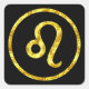 Leo Sun Sign Gold Black Circle Hammered Gold Look Square Sticker