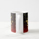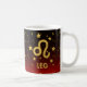 Custom mug for "Leo" featuring golden zodiac symbol, gold stars, and red and black gradient background.