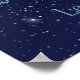 Print featuring the symbol for Leo in soft silver blue, overlaid with the stars of the constellation, against a starry sky background graded from deep midnight blue to black.