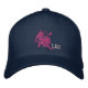 Fits well due to elastic edging, not adjustable. Good qualty material. Good quality embroidering. Subtle lettering (white on beige) just as my wife likes.