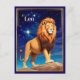 Postcard in the zodiac sign Leo, featuring a powerful lion standing proudly on a rock beneath a star-filled night sky. The lion’s flowing mane radiates strength and nobility, echoing Leo’s traits of confidence, leadership, and courage.