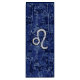 A silver chrome like Leo zodiac sign on a navy blue digital camouflage background. A modern urban racy design for a great custom birthday gift idea.