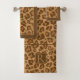 Leopard animal print in brown tones and monogram Bath Towel Set. This trendy design displays a leopard animal print with brown borders and monogram.