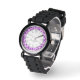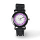 A unique leopard print style watch in purple and grey hues. Customise with your name. This example reads Jennifer. Uniquely designed by Sarah Trett.