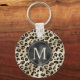 Leopard Animal Print With Black Faux Foil Monogram Keychain