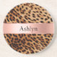 Leopard Animal Rose Pink Ribbon Name Coaster