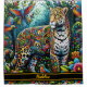 A beautifully designed duvet cover features a vibrant leopard surrounded by lush tropical plants and colourful birds, creating a striking and artistic bedding piece for any room.