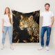 Leopard Cheetah Black Gold Jungle Safari Leaves Fleece Blanket