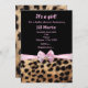 Leopard Cheetah Black Pink Bow Girls Invitation