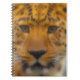 Beautiful leopard face with bright orange and black markings and piercing eyes.