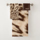 Modern leopard fur pattern design. Wash Cloth is brown colour with your name, hand towel has leopard fur design, so is bath towel. Customize your name.