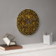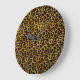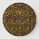 This trendy, cute wall clock features a splotched leopard print pattern with black animal spots on an orange-yellow-gold fur background. The numbers are done in gold roman numerals that blend in with the leopard print. Bring out the wild cat in you with this cool feline design. It's the perfect bold, original look for animal lovers. Check our shop for matching items.