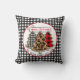 Personalized with name and established date Black and white Buffalo plaid, red and black gingham, leopard print Christmas Trees pillow.