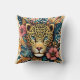 A stunning Throw Pillow showcases an intricately designed leopard's face surrounded by colourful foliage and flowers, creating a vibrant and artistic centerpiece for any bedroom decor.