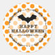 Halloween stickers feature a bat, scroll frame, and leopard print Happy Halloween.