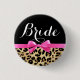 Leopard Hot Pink Bow Bride Wedding Button