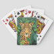 Playing Cards in a leopard with bright, intense eyes peering through lush green foliage. The sharp contrast between the leopard's spotted fur and the vibrant leaves creates a striking visual effect.