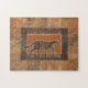 Leopard on Orange and Brown Background Jigsaw Puzzle