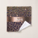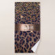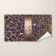 Elegant, glamourous and feminine with brown, golden and black leopard pattern, decorated with golden confetti. Template for your name. A faux bronze coloured band. Add your name and monogram letter, black and white text.