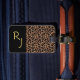 A stylish luggage tag with a leopard animal print border in tan, brown and black. Initials on front and contact info on back are displayed in gold coloured text. Left stripe colour may be changed by clicking CUSTOMIZE IT, EDIT, then BACKGROUND.