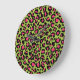 Leopard Pattern in Raspberry on Lime Green Large Clock