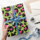 Leopard Pattern in Raspberry on Lime Green Wrapping Paper