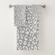 Leopard pattern in white and light grey bath towel set