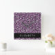 Leopard Pattern, Spots, Purple Leopard, Your Name Square Wall Clock