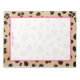 A notepad featuring a leopard print background with sheer centre section outlined in pink. Personalize with your name in pink.