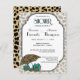 This design features a muted leopard pattern background with a white accent frame and a pile of coordinated gifts with teal bows and ribbon. A coordinated pattern umbrella completes the look. We have plenty of customizable text for you to add your party information. Shown here as a wedding shower invitation this versatile design can be customized for couples showers, personal showers or even baby showers! The reverse side of this invitation has the same pattern. This design is available in a variety of colours. We have matching stamps too! If you need this design on other products please use the send message feature attached to this store and we will be happy to create that product for you.