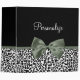 An elegant black and white leopard print pattern featuring a dark green satin bow. Personalize this girly animal print design by adding the name of your favourite girly girl. The bow is a digital image, not an actual ribbon.