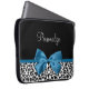 Leopard Print Animal Pattern Pretty Blue Bow Laptop Sleeve