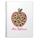 A spiral notebook for teachers featuring an illustration of a leopard print apple. Personalize with your name.