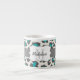Chic, modern, pretty wild animal big cats leopard print espresso mug in aqua blue, white, and grey that you can easily customize with your name and monogram initial!
