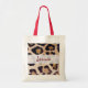 These bags were super cute (I purchased 3). The material is more of a canvas look & feel. The colour of the bag is slightly off white, but the letters look exactly as pictured. I took 3 photos in different lighting. Would recommend! I liked how there was an option to choose the font and colour of the name. The words are legible and the colours are exactly as pictured.