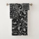 Leopard Print Animal Print Black and Silver Grey Bath Towel set. Includes bath towel, hand towel and wash cloth.