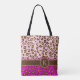 A stylish leopard animal style graphic print bag with and brown band in pink, brown and golden yellow hues. Matches a range of other leopard print monogram products. Personalize with your own initial monogram for a great personalized look. Designed by Sarah Trett. www.sarahtrett.com for www.mylittleeden.com