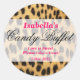 leopard print Candy Buffet Sticker. Great for Candy buffets or cupcake tables at weddings, birthday parties, Baby showers, Communion, Confirmations and lots more! Design features background leopard print in black and gold. Wording, text colour and style can be changed in the 'Customize' Menu. perfect for animal or safari themed parties