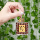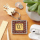 A trendy chevron pattern features rich burgundy red and bright white layers sandwiching layers of fashionable leopard print. A deep brown line separates the chevron columns for a classy final touch. Customize the monogram on this keychain with your initial to make it uniquely your own.