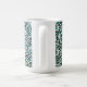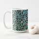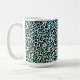 This ceramic coffee mug is shown with a teal colour leopard print.