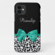 Leopard Print Emerald Green Ribbon Bow Chic Name Case-Mate iPhone Case