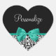 Personalize by adding the name of any girly girl to these trendy black and white leopard print heart-shaped stickers with a girly emerald green ribbon tied into a cute bow. This stylish animal print design is a flat printed image, and does not contain actual ribbon.