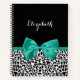 Personalize by adding the name of any girly girl to this trendy black and white leopard print standard 8.5x11'' notebook with a girly emerald green ribbon tied into a cute bow. This stylish animal print design is a flat printed image, and does not contain actual ribbon.