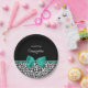 Personalize by adding the name of any girly girl to these trendy black and white leopard print paper plates with a girly emerald green ribbon tied into a cute bow. This stylish animal print design is a flat printed image, and does not contain actual ribbon.