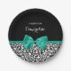 Leopard Print Emerald Green Ribbon Bow Chic Name Paper Plate